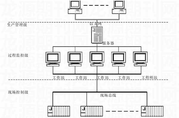 針對鎢礦選廠生產(chǎn)的實際需求,這里應(yīng)用相應(yīng)的自動化技術(shù),對自動化監(jiān)控系統(tǒng)進(jìn)行了設(shè)計。在系統(tǒng)設(shè)計中,遵循“方案合理、技術(shù)先進(jìn)、運行可靠、操作方便”的原則,系統(tǒng)整體采用集散控制系統(tǒng),基于現(xiàn)場總線通訊,其整體網(wǎng)絡(luò)構(gòu)架如下: