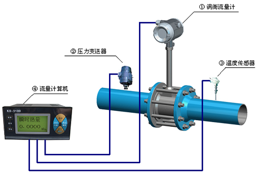 渦街流量計(jì)是以全新的設(shè)計(jì)理念,將溫度、壓力、流量信號集于一體,通過智能數(shù)字處理器將三種信號混合處理后輸出一個(gè)補(bǔ)償后的標(biāo)準(zhǔn)流量,從而實(shí)現(xiàn)了對氣體、蒸汽的溫壓補(bǔ)償功能。由于采用了智能一體化的設(shè)計(jì)理念,因此,凱銘渦街流量計(jì)具有結(jié)構(gòu)緊湊、安裝使用維護(hù)方便的特點(diǎn)。