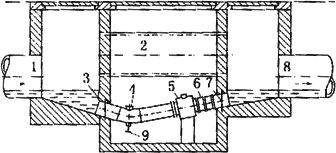 由于大口徑管道在多數(shù)場合下是埋在地下的,因此大口徑傳感器在安裝前應(yīng)做好水泥地坑。圖6-19所示是在給排水系統(tǒng)中常見的安裝形式。水泥地坑應(yīng)有足夠的活動空間,側(cè)壁埋有敷設(shè)電纜的鋼管,上有蓋板防止雨淋,下有泄水管以免坑內(nèi)積水而使傳感器侵水。為了拆裝方便,傳感器應(yīng)放在墊腳上,且在下游側(cè)裝有活絡(luò)的伸縮管。圖6-20是測量鹽水流量計在地下水泥管污水排放系統(tǒng)中的安裝實例。