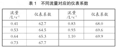 純凈水流量計中流速對儀表系數(shù)有著很大的影響,這部分誤差會極大影響*終計量的精確度,傳統(tǒng)的做法是當(dāng)流速發(fā)生較大的持續(xù)變化時,需對純凈水流量計進(jìn)行重新標(biāo)定。針對這個問題,在不同流速下,測量了純凈水流量計的儀表系數(shù)(見表1)。