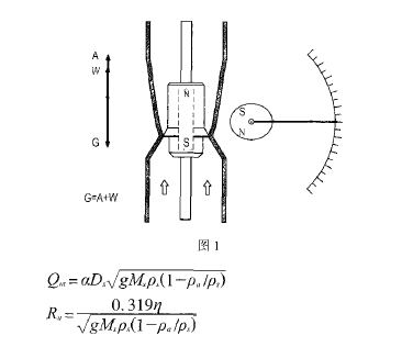 如圖1所示,相對(duì)應(yīng)測(cè)量介質(zhì)的某**量,磁性浮子在測(cè)量管中對(duì)應(yīng)一個(gè)浮子位置,這個(gè)浮子位置通過(guò)指示器中的經(jīng)過(guò)精密充磁的磁禍合系統(tǒng)帶動(dòng)指針,由刻度盤和指針讀出相應(yīng)的流量值。