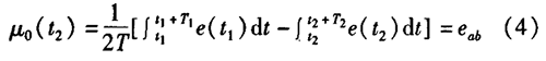智能濃硫酸電磁流量計(jì)一般都采用工頻交流電源供電,其電源電壓的幅值和頻率的變化都會(huì)給智能濃硫酸電磁流量計(jì)帶來電源性干擾噪聲。對(duì)電源電壓的幅值變化,因采用多級(jí)集成穩(wěn)壓,一般而言電源電壓的幅值變化對(duì)電磁流量的測量精度影響不大。當(dāng)電源電壓的頻率波動(dòng)時(shí),雖然其波動(dòng)范圍有限,但對(duì)智能濃硫酸電磁流量計(jì)測量精度影響較大。為了解決工頻干擾問題,實(shí)現(xiàn)對(duì)流體流速感應(yīng)電勢e柚信號(hào)的準(zhǔn)確測量,需利用以下基本關(guān)系:①勵(lì)磁周期為工頻周期的整數(shù)倍,即勵(lì)磁頻率為50/nHz(n為偶數(shù));②正負(fù)勵(lì)磁下的同相位采樣。圖2是對(duì)應(yīng)低頻矩形波勵(lì)磁形式下的典型電勢信號(hào)形式,按上述關(guān)系在一個(gè)勵(lì)磁周期下,若假設(shè)t。和t:點(diǎn)為工頻干擾的等效干擾點(diǎn),且采樣寬度T=T1=T2,則e –ab的基本算式為:,