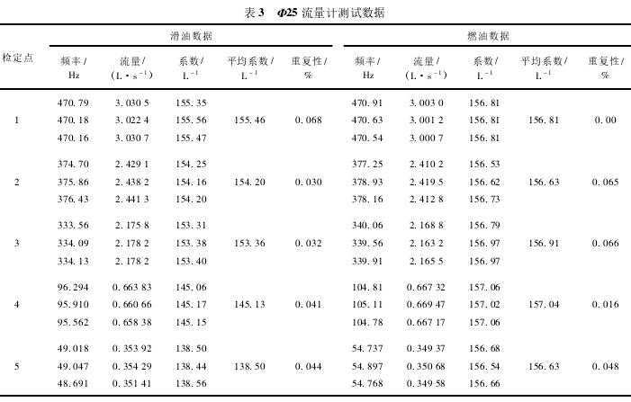 Φ25流量計測試數(shù)據(jù)如表3所示。