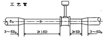 鍋爐蒸汽流量計由于其獨特的性能,一直受到人們重視,并己到了廣泛的應用,但仍有兩個方面的問題困擾著人們,一是由于儀表上游管道阻流件的干擾,流場發(fā)生畸變,影響旋渦正常撥離。為了克服流場擾動,儀表前需要配裝較長直管道(一般為15~40倍的工藝管內(nèi)徑的長度),而在實際現(xiàn)場是很難滿足的。二是,鍋爐蒸汽流量計主要特點之一是量程寬,一般在10:1左右,應該說這樣寬的測量范圍應屬比較優(yōu)良的性能,但在實際工業(yè)應用中,*大流量遠低于儀表的上限值,*小流量又往往會低于儀表的下限值,一些儀表經(jīng)常工作在下限流量附近,造成儀表的計量準確度下降,這時信號較弱,儀表的抗干擾能力也下降。為了測量小流量,人們往往采用內(nèi)腔形狀為園臺的傳統(tǒng)變徑管,經(jīng)過縮徑提高測量處的流速。使鍋爐蒸汽流量計工作在正常流速范圍內(nèi),但這種變徑方式,結(jié)構(gòu)尺寸大(一般長度為工藝管內(nèi)徑的3~5倍),同時,由于流體流經(jīng)變徑管,在變徑處產(chǎn)生大量旋轉(zhuǎn)流團,增大局部阻力損失,也使流場發(fā)生畸變。所以必須在變徑管與儀表之間加裝大于15倍工藝管內(nèi)徑長度的直管道進行整流,且增加了沿程阻力損失(如圖1所示),這種方法增加施工成本,也給加工、安裝帶來不便。