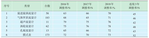 在2017年的工作基礎(chǔ)上,對2018年送檢的氣體流量計(jì)進(jìn)行了抽查,并按不同類型進(jìn)行了統(tǒng)計(jì)(表2)。