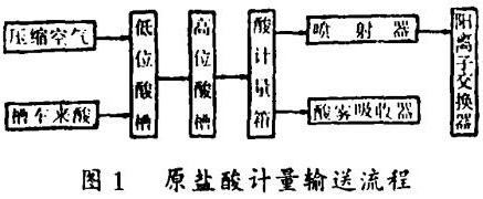 原鹽酸貯存、計量和輸送流程如圖1。