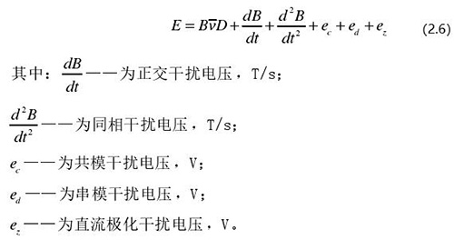 從上圖 2.5 中可以觀察到兩個(gè)電極、勵(lì)磁線圈、轉(zhuǎn)換器內(nèi)阻之間形成了一個(gè)閉合回路,將此回路稱之為初級(jí)繞組,從理論上進(jìn)行分析,磁力線 B 應(yīng)當(dāng)平行于勵(lì)磁線圈所產(chǎn)生的磁感應(yīng)線,但在實(shí)際的應(yīng)用過程中由于工藝差異,因此無法達(dá)到理想狀態(tài),會(huì)產(chǎn)生磁力線穿過勵(lì)磁線圈磁感應(yīng)線的情況,此時(shí)將會(huì)產(chǎn)生相應(yīng)的感應(yīng)電動(dòng)勢(shì),將此部分感應(yīng)電動(dòng)勢(shì)稱為變壓器效應(yīng)。此效應(yīng)同樣滿足于楞次定律,利用楞次定律進(jìn)行計(jì)算可得如下電動(dòng)勢(shì):