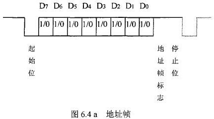 飲用水流量計等節(jié)點設(shè)備和站內(nèi)PC機間的通信采用異步串行通訊控制規(guī)程,并采用地址位喚醒握手協(xié)議。因此在協(xié)議中規(guī)定了傳地址和傳數(shù)據(jù)兩種不同的幀格式,如圖.64所示。地址幀和數(shù)據(jù)幀由11位構(gòu)成,幀格式為l位起始位,l位停止位,8位數(shù)據(jù)位,1位*9位。我們將*9位設(shè)定為“地址/數(shù)據(jù)指示位”,用來區(qū)分所發(fā)送/接受的幀信息是地址幀還是數(shù)據(jù)幀。*9位為1,表示PC機發(fā)送/接受的是“地址幀”*9位為O,表示主機發(fā)送/接受的是“數(shù)據(jù)幀”。命令幀與校驗和的發(fā)送格式與數(shù)據(jù)幀相同,因此可由數(shù)據(jù)幀演化得到。