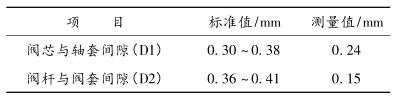 1)由上表可以看出,閥芯與閥套間隙(D1)、閥桿與閥套間隙(D2)明顯小于標(biāo)準值,導(dǎo)致運行時出現(xiàn)局部卡澀現(xiàn)象。