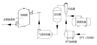以原料萘為例。萘由原料儲(chǔ)罐經(jīng)液萘泵加壓后進(jìn)入萘蒸發(fā)器,液萘在萘蒸發(fā)器內(nèi)由中壓蒸汽加熱汽化分離,經(jīng)流量調(diào)節(jié)閥、流量計(jì)和氣萘切斷閥后進(jìn)入汽化器;空氣經(jīng)風(fēng)機(jī)加壓后,經(jīng)空氣加熱器加熱后進(jìn)入汽化器,氣萘和空氣在汽化器內(nèi)混合均勻后進(jìn)入氧化反應(yīng)器上部,經(jīng)催化床層發(fā)生氧化反應(yīng)生成苯酐和少量的副產(chǎn)物(以順酐、苯甲酸、萘醌、和鄰苯二甲酰亞胺為主);反應(yīng)氣體經(jīng)智能型渦街流量計(jì)冷卻后再進(jìn)入切換冷凝器進(jìn)行凝華捕集,少量未被捕集的有機(jī)物和不凝氣體經(jīng)尾氣管路進(jìn)入蓄熱焚燒裝置焚燒處理,焚燒后的尾氣達(dá)標(biāo)排放。