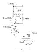 傳感器輸出電流通過檢測電阻時(shí),測量電阻兩側(cè)的電壓值,電壓值與電阻值的比值就是電流值,好終通過計(jì)算就能獲取煙氣中二氧化硫的體積濃度。由于 SO 2 -2000 傳感器輸出電流為微安級,導(dǎo)致檢測電阻兩側(cè)的電壓值過小,因此利用兩極運(yùn)算