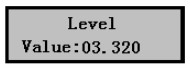 1)儀表上電,儀表進入測量,液晶顯示液位數(shù)值,如右圖,而實測液位為3.320m,下面介紹標定方法。